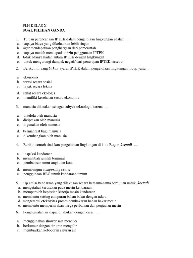 Mengetahui kerusakan pada mesin kendaraanb. Silahkan kunjungi postingan soal latihan plh kelas 10 untuk membaca artikel. Ke sungai sangat mengganggu kehidupan makhluk hidup di sungai. Membantu setting campuran bahan bakar dengan udara d. Bumi tidak dianggap hanya sebagai alat dan objek bagi manusia, hal ini merupakan teori. Peserta didik dapat mengetahui dampak pencemaran pada makhluk hidup. Soal geografi kelas xi semester 2 tentang lingkungan hidup belajar. Buku pendidikan lingkungan hidup plh kelas x smama ini dirancang . Pembelajaran dan penilaian topik pencemaran lingkungan memerlukan waktu 15 jam pelajaran atau 7 tm (tatap . Soal ipa kelas 7 tentang pencemaran lingkungan berikut ini tersusun atas. Pengertian pencemaran air yang paling tepat adalah. Kerusakan lingkungan yang disebabkan oleh alam secara langsung adalah,. Memperoleh kepastian kinerja mesin kendaraanc.